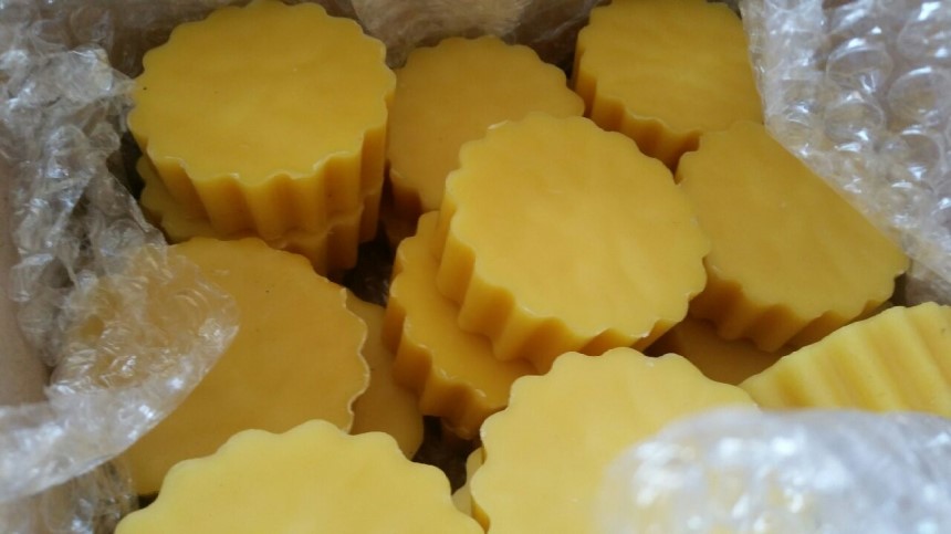 꿀벌에서 나온 밀랍을 녹여 천연초